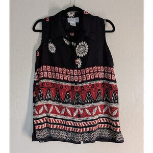 California Krush Blouse Womens Large Rayon Sleeveless Button Down Bohemian Flowy