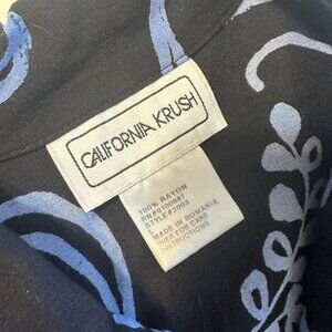California Krush Womens Skirt Set Button Up Blouse Rayon Large Vtg 90s Black