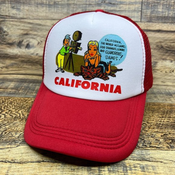 California Mens Trucker Hat Red Snapback 1950s Logo Tiger Model Baseball Cap