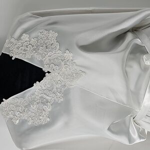Glamorous Satiny Wrap Robe with Detached Belt! No Stretch. No Pockets. Beautiful Embroidered Detail!