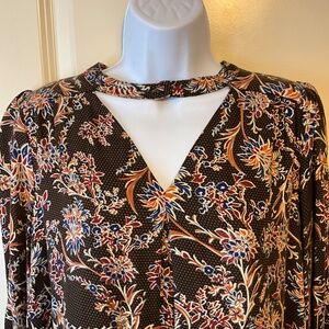 Fall colors brown, orange, rust & blue. Long Sleeve with elastic cuffs.. V neck with button chokes. Fully Lined