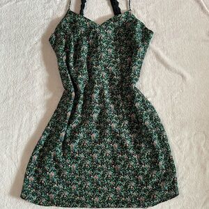 California Moonrise Black spaghetti strap floral double lined midi dress