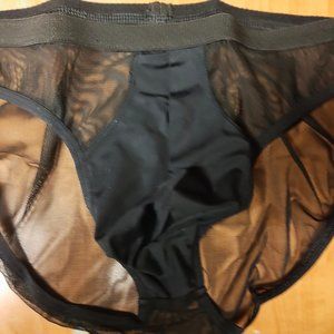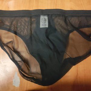 Hot see-through black mesh shows a glimpse of what's underneath. What's behind the pouch is only visible to those you want to show it to. This company is no longer in business and these are hard to find. Grab them while you can. I have several sizes available and I have a few white ones too. Contact me about them.