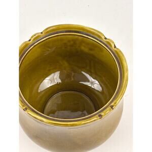 California Pottery Cookie Jar 2004 Mustard Yellow Embossed Fruit VTG Kitchen