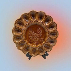 California Pottery Golen Brown Deviled Egg Plate, Made in USA