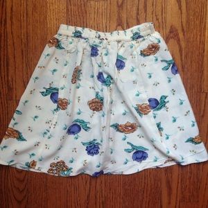 Relaxed skater skirt with an elastic waistband and button closure down the front.