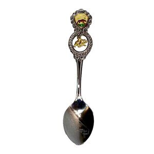 California Stamped Souvenir Spoon 4 5/8" Silver Tone with Gold Tone Bear Charm & Enamel Shield Insert Marjed Union Japan. Vintage Collector Travel Memrobilia in Great Pre-owned Condition without the Original Box.