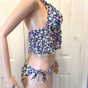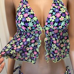 California Sunshine Juniors Floral Handkerchief Halter Tankini Set Size Large. New with tags and hygiene liner. From smoke free home.