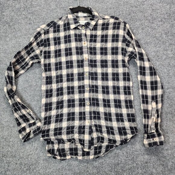 California Tailor Shirt No 2 Womens XS Navy Plaid Long Sleeve Shirt Cotton $198