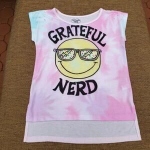 California Talks Girl's LG Grateful Nerd Smiley Face Graphic T-shirt