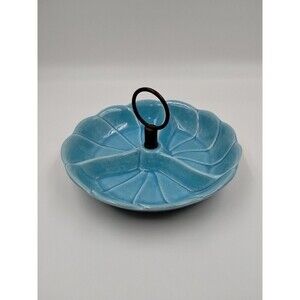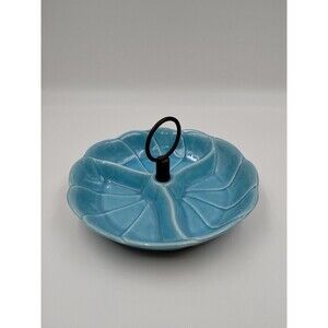 California USA 440 Pottery Candy Nut Divided Dish Mid Century USA Blue Aqua MCM.