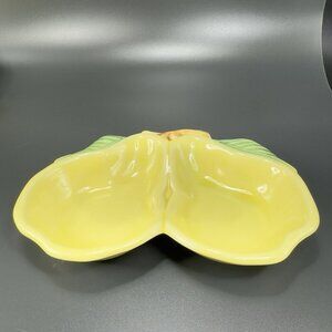 Vintage California USA Pottery Pearl Fruit Divided Dish Tray Sauce Bowl Set 2