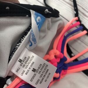 California Waves Juniors Dot Flounce Macramé Bikini Top Size M Black Strappy New