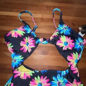 California Waves Juniors' Gerber Daisy Knotted Cutout One-Piece Swimsuit Small