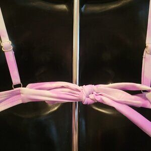 Adjustable shoulder straps; self-ties at mid-back