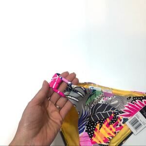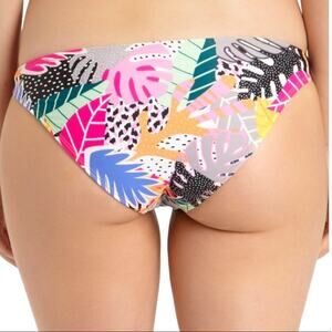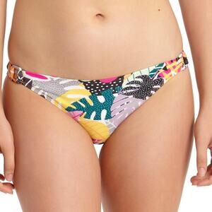 A distinctive look with a vibrant pop art print and hardware squares at the sides, California Waves' bikini bottoms instantly amp up your beach style in a snap. Moderate bottom coverage. Square hardware trim at sides. Lined.