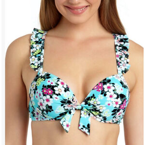 California Waves Metallic Shine Bandeau Neckline Bikini Top