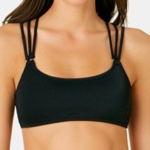 California Waves Womens Juniors' Ribbed Strappy Back Bralette Top