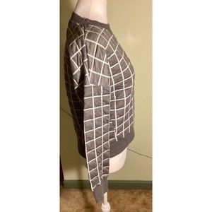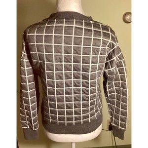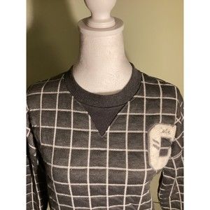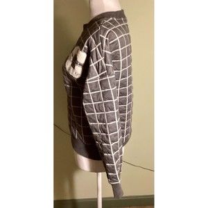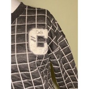 Condition: Pre-Owned Size: Small Color: Gray & Ivory Windowpane pattern Features: Pullover - Long Sleeve - Letter C on chest - Quilted
