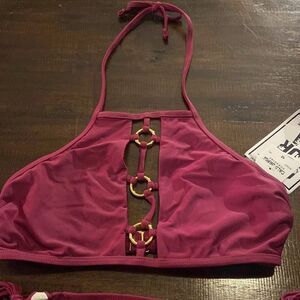 California Sunshine Magenta Bikini Set Top- M Bottom- Small Gold hardware