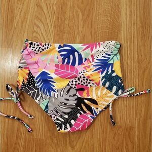 California Waves Tropic-Print High-Waist Bikini Bottom size Small.