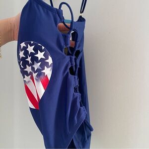 California Waves Women’s Side Tie Heart American Flag One-Piece Swimsuit size M