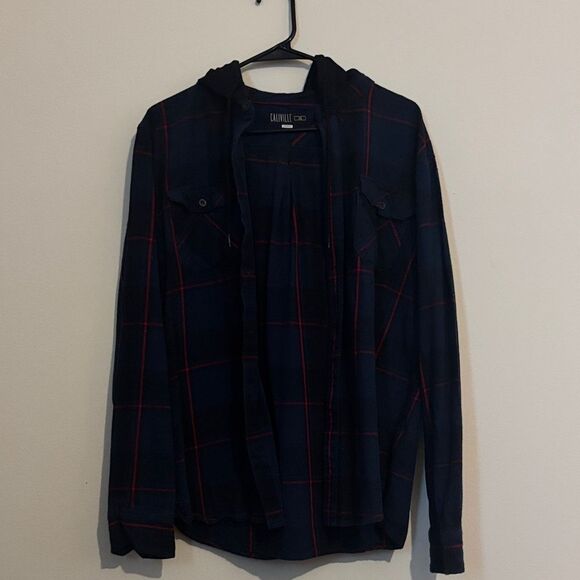 Caliville Plaid button up hooded shirt jacket