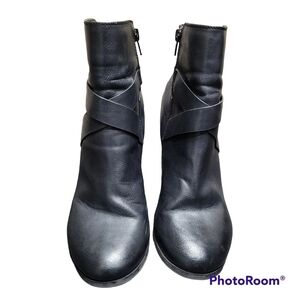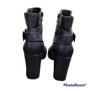 Call It Spring Black Faux Leather Retro Chunky Block Heel Ankle Boots Size 8.5