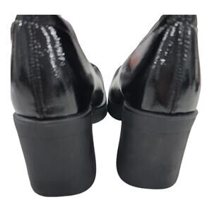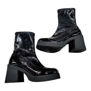 Brand new, never worn. Black 3-inch block heel ankle boots. Slip on. Patent leather finish.