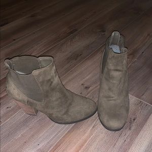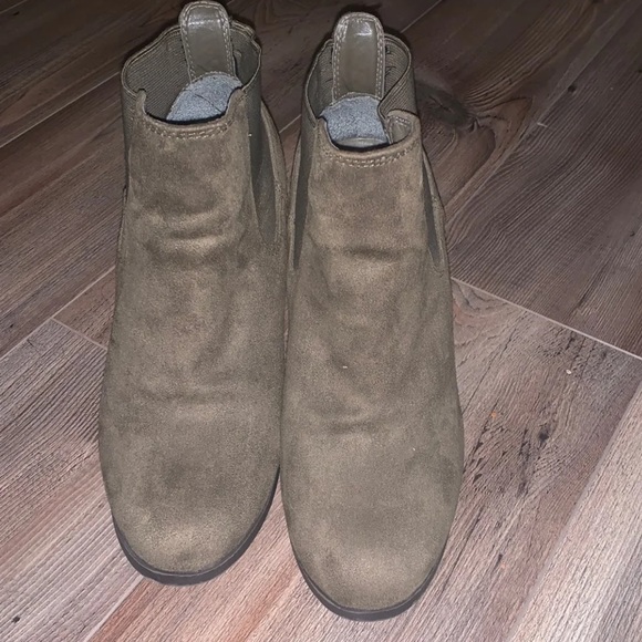 Olive color booties.