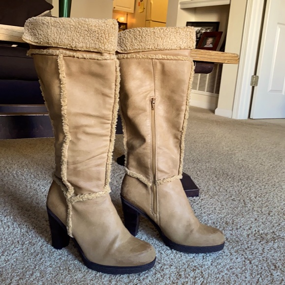 These size 10 boots are a natural color with Sherpa accent lining. Brand new condition!