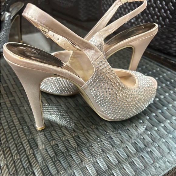 Elevate your look with these stunning cream heels from Call It Spring, featuring a dazzling rhinestone-embellished upper and a sleek stiletto heel. The peep-toe design and adjustable slingback strap ensure both style and comfort, making them perfect for special occasions.