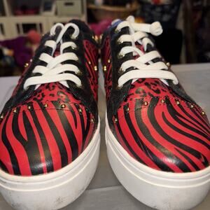 These Call It Spring Disney Women's Sneakers featuring the Lion King theme are a rare find for any Disney fan. The red striped sneakers with size 11 are designed with the iconic Simba character from the beloved Disney movie. Made with a comfortable athletic style, these sneakers are a fun and stylish choice for women looking to add a touch of cartoon flair to their outfit. Perfect for casual wear or Disney fandom, these sneakers are a unique addition to any shoe collection.