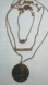 Chic triple layer design. Features a round pendant, bar, and gem detail. Perfect for layering.