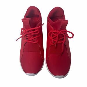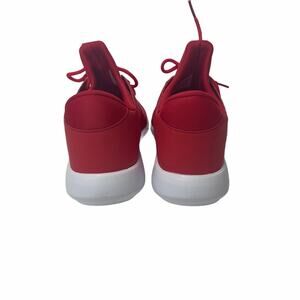 Features- lace up, white soles, lightly padded, faux leather, elastic trim