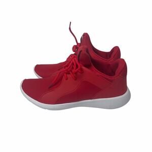 Features- lace up, white soles, lightly padded, faux leather, elastic trim