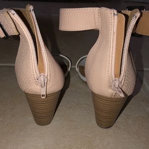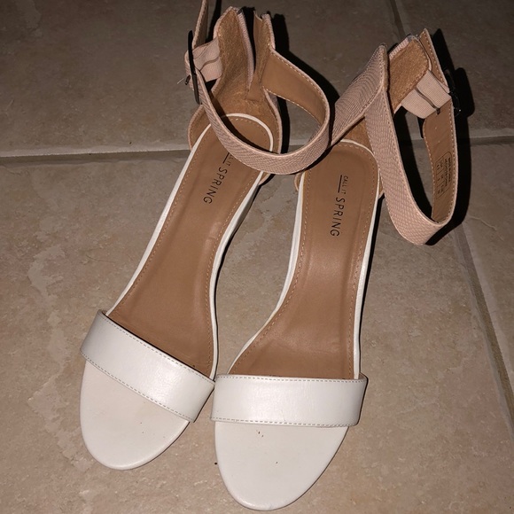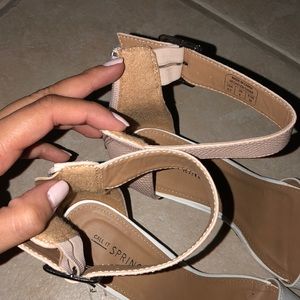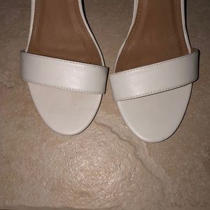 Strap wedges in white and blush color. Heel is about 3”