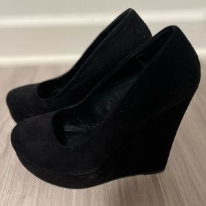 Color: Black Suede Wedges. Wedges have been worn a few times. Condition: used, good Box included with shoes.