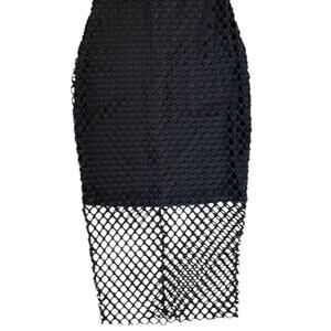 Call Me Eden Black Mesh Overlay Midi Dress Womens Size Small Office Siren