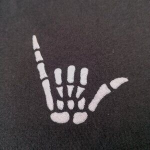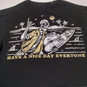 Call Your Mother Cropped Shirt Medium Skeleton Surfer Have A Nice Day Everyone