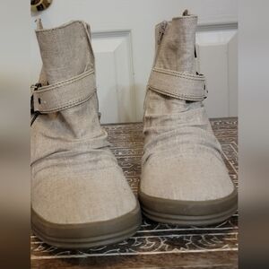NWOT SIZE 10 CREAM CANVAS khaki tan bootie boot shoes