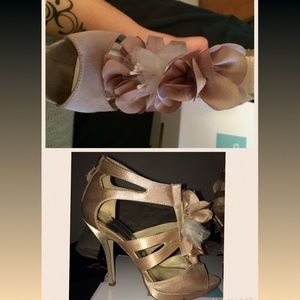 Very cute pair of heels. Unfortunately, they do have some marks on the inside of both heels, and two very small scratches on the back of one shoe( on the heel). Other than those flaws, these shoes are gorgeous and make any outfit. They also have a small zipper in the back.