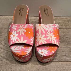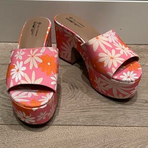 Cute pink and orange platform floral slides