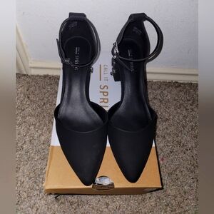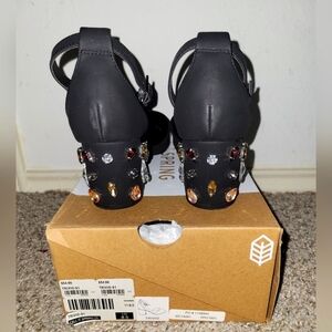 Call it Spring- Trivis, Size 8.5, Black, Gem Block Heel, Ankle Strap