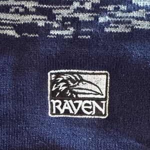 Stay cozy and stylish with the Raven two-tone knit beanie. Featuring a sleek navy and gray design, this hat is perfect for any outdoor occasion.