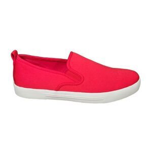 These bright red low top fashion sneakers from Call It Spring have goring at the sides for easy slip on/off. Synthetic fabric upper with white rubber outsole.