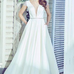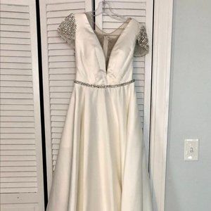 This dress is a showstopper - it is comfortable and elegant and the sleeves add such gorgeous detail. Only reason I am selling is because I decided last minute it was not the right fit for wedding.