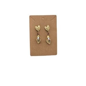 Calla Lily Faux Pearl Drop Gold Tone Earrings Vintage Style Floral Dangle