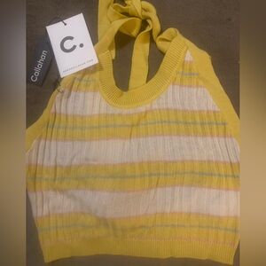 Cami bra by Callahan. Ties around neck and back. Yellow with pink and blue strips. Great piece to wear under a cardigan. NWT. Color is Yellow. Size is XS.