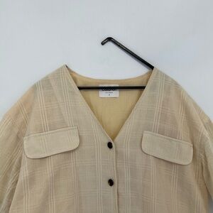 Matching set including tortoise buttoned midi high waisted skirt and front pocket top. Has a contemporary gauze linen feel and look but it is cotton.